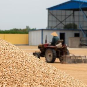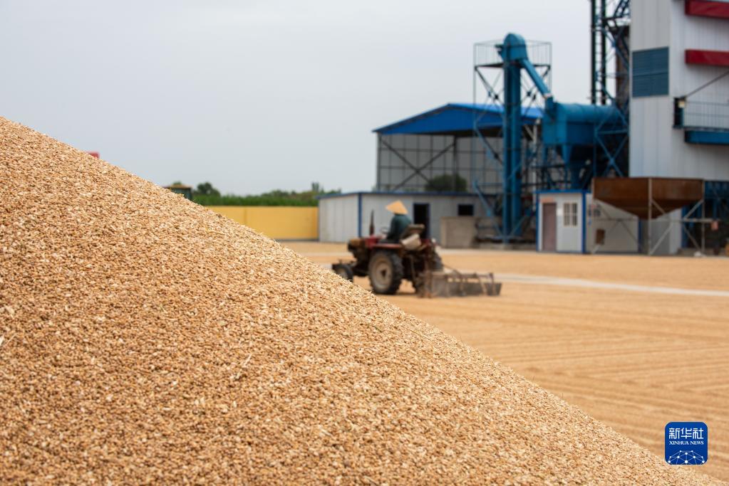 7月10日,在石嘴山市平羅縣姚伏鎮,農民晾曬收獲的小麥。
