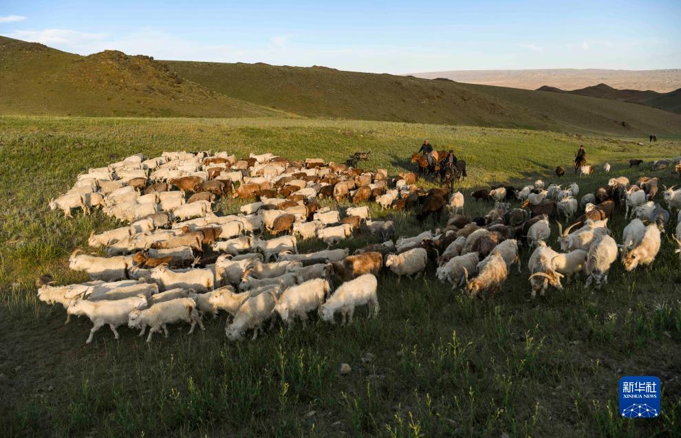 在巴爾魯克山深處,轉場隊伍向更高海拔的夏季牧場前行(7月3日攝)。