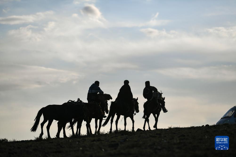 哈布得拉什么(中)、女婿阿依薩(左)、侄子寨桑騎馬繼續向深山前進(7月3日攝)。