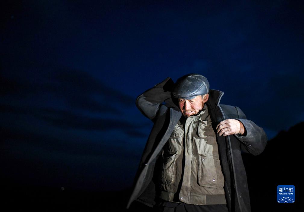 深夜,氣溫降至13度左右,哈布得拉什么又加了一件衣服御寒(7月3日攝)。