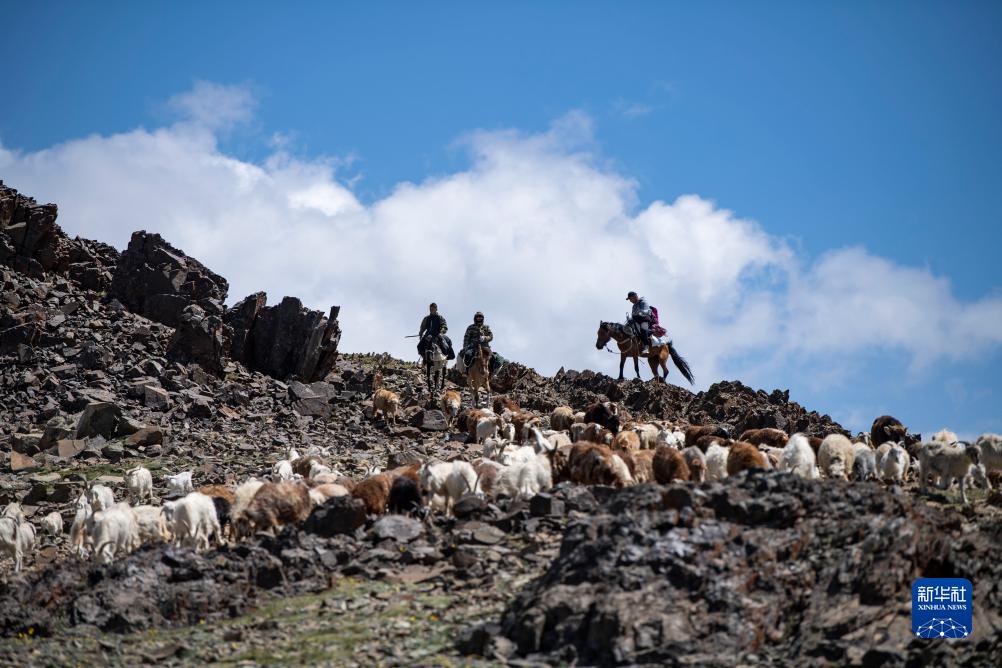 轉場隊伍翻越一處山坡,向夏牧場前進(7月4日攝)。