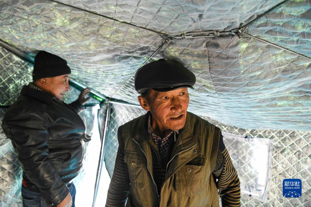 哈布得拉什么(右)在夏牧場上和親友一起搭建帳篷(7月4日攝)。