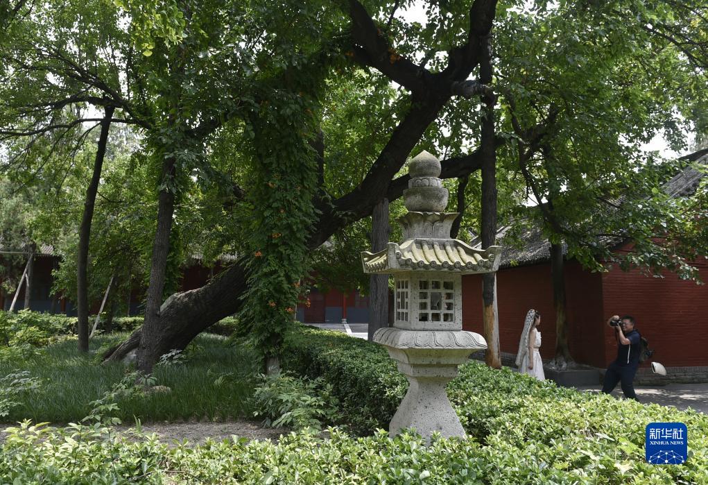 7月11日,游人在洛陽市白馬寺景區游覽拍照。