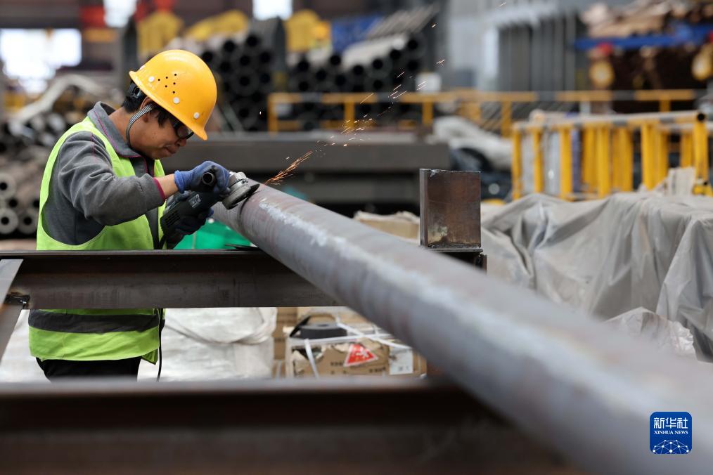 7月11日,在承德市鷹手營子礦區一家無縫鋼管生產企業,工作人員在修磨氣瓶管。