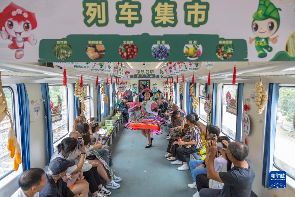 暑運以來,中國鐵路成都局集團有限公司重慶客運段在貴州往返重慶的5630/5629次普速列車上打造主題文化車廂,增設“列車集市”和非遺大舞臺,在助農增收的同時,滿足旅客暑期多元化出行需求。旅客乘坐該趟列車,不僅可欣賞沿途各地的風景,還能在列車上逛“集市”、看非遺表演,體驗別樣旅途時光。