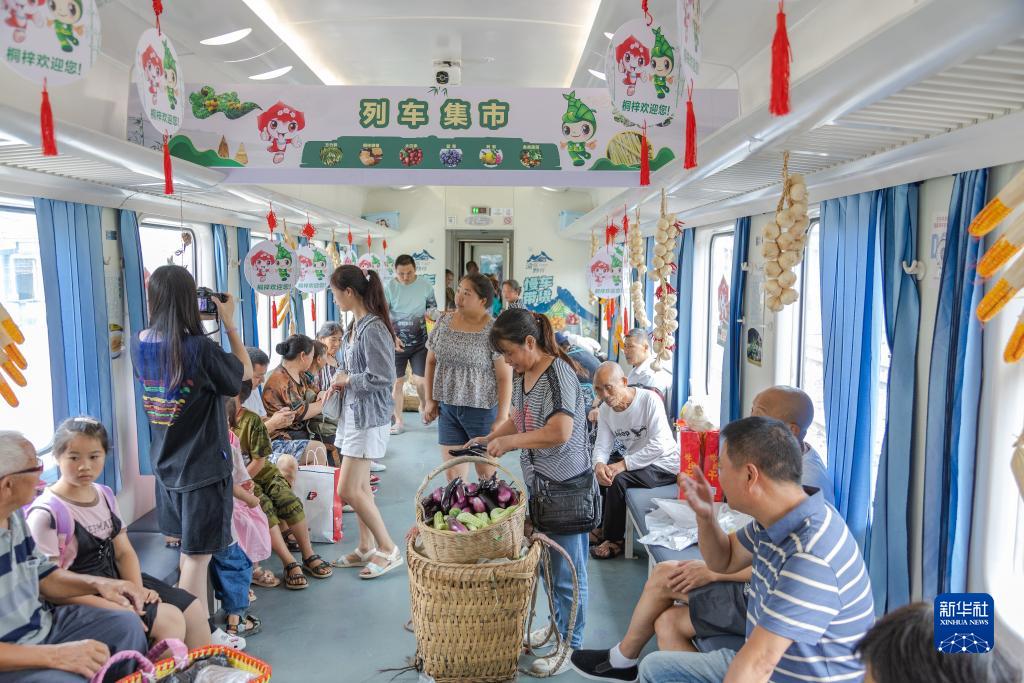 暑運以來,中國鐵路成都局集團有限公司重慶客運段在貴州往返重慶的5630/5629次普速列車上打造主題文化車廂,增設“列車集市”和非遺大舞臺,在助農增收的同時,滿足旅客暑期多元化出行需求。旅客乘坐該趟列車,不僅可欣賞沿途各地的風景,還能在列車上逛“集市”、看非遺表演,體驗別樣旅途時光。