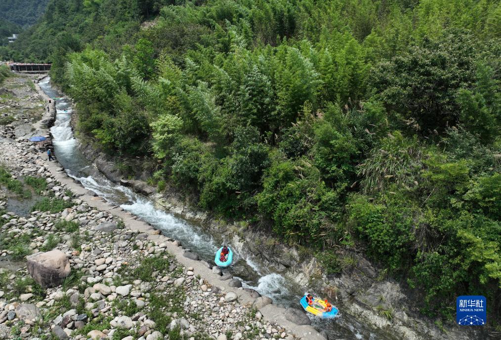 近日,浙江省杭州市持續晴熱高溫天氣,不少市民來到美麗鄉村體驗高山游、親水游。