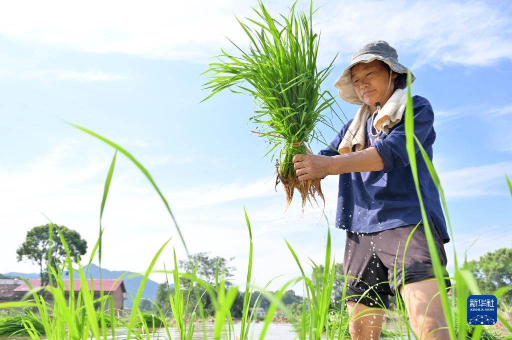 盛夏時節,湖南省多地進入一年當中最繁忙的“雙搶”季節,農民們冒著酷暑搶收早稻、搶插晚稻,為全年糧食豐產打下基礎。新華社發(李建新 攝)
