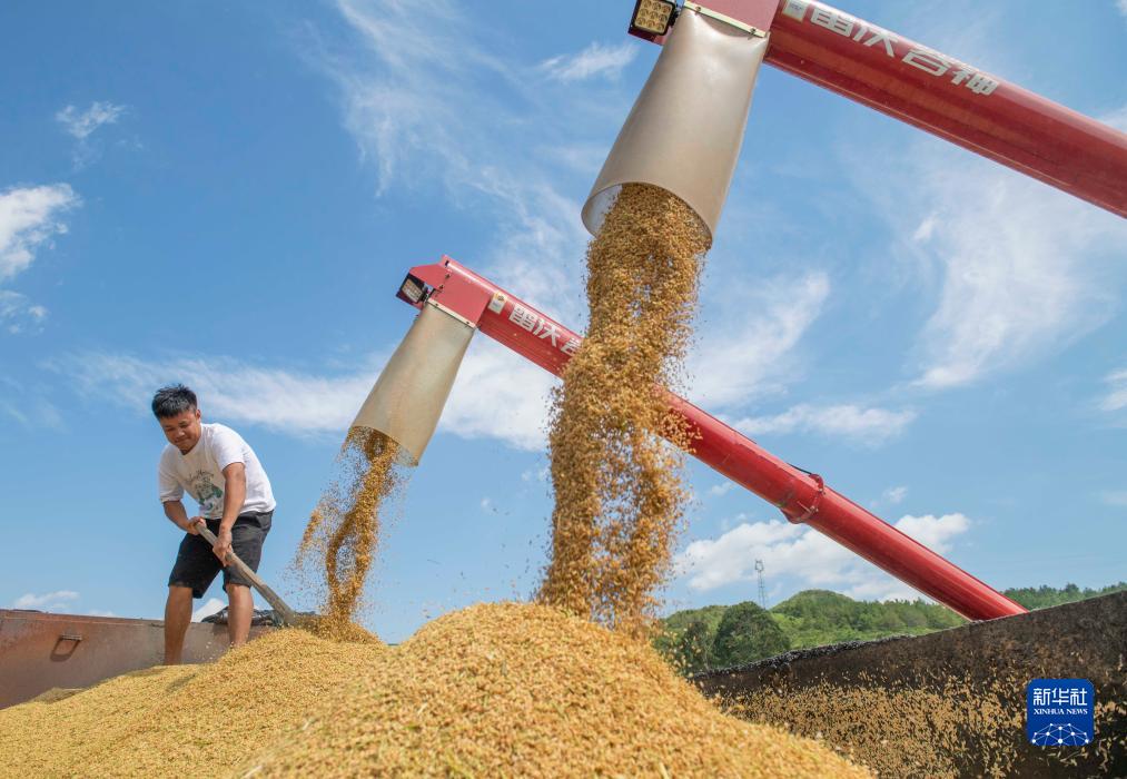盛夏時節,湖南省多地進入一年當中最繁忙的“雙搶”季節,農民們冒著酷暑搶收早稻、搶插晚稻,為全年糧食豐產打下基礎。新華社發(蔣克青 攝)