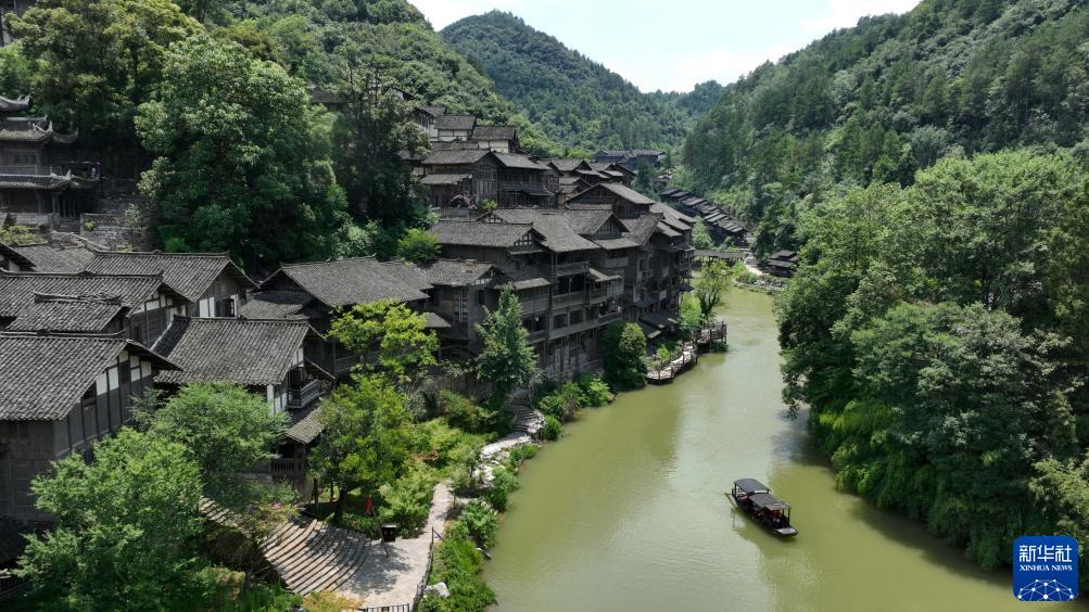 7月11日拍攝的貴州省遵義市播州區烏江寨景區一角(無人機照片)。
