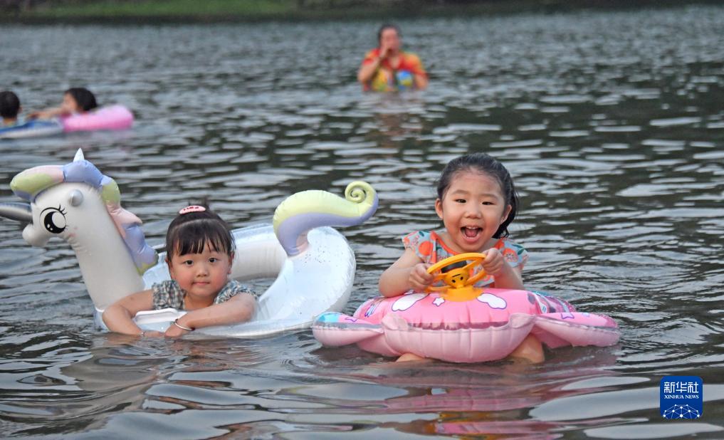 當日是入伏第一天,人們來到海邊、泳池和水上樂園戲水消暑,暢享清涼。