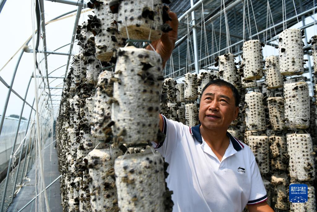7月11日,在內蒙古扎蘭屯市扎蘭屯黑木耳產業孵化園區內,工作人員在采摘黑木耳。