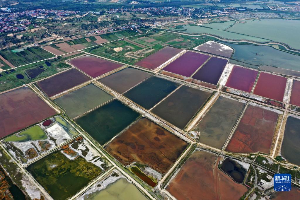 運城鹽湖一角(無人機照片,7月11日攝)。