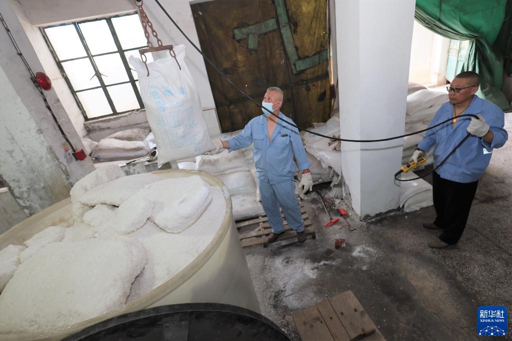 7月11日,鐵路上海站綜合車間司爐工在為離子交換器鹽池進行加鹽作業。