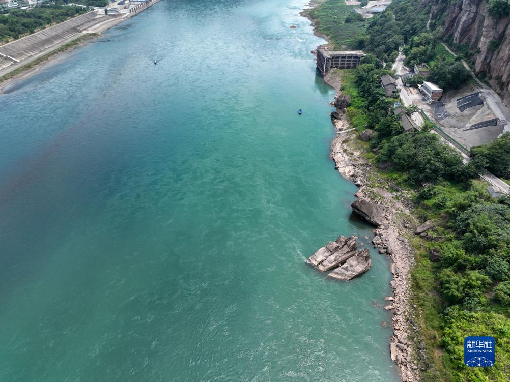 這是2023年6月20日拍攝的位于金沙江四川省宜賓段的三塊石(無人機照片)。這里曾經是著名的白鱘、中華鱘、長江鱘產卵場。新華社發(莊歌爾 攝)