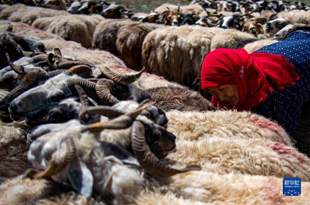 多爾格村的一名村民在擠羊奶(7月11日攝)。