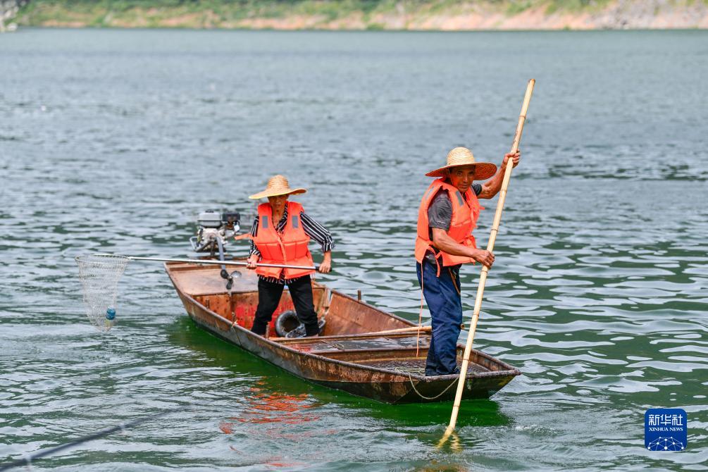 七月的烏江河谷,在夕陽西下時依然酷熱難耐。盧錫永和冉茂英駕駛小船,忙著清理前幾天因上游漲水沖下來的漂浮物。一人打撈,一人掌舵,夫妻倆分工協作,配合默契。這一干,就是37年。