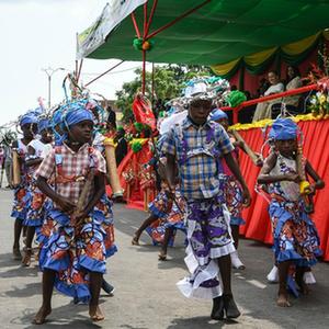 7月12日,演員在圣多美和普林西比圣多美島瓜達盧佩鎮舉行的獨立日慶典活動上表演。