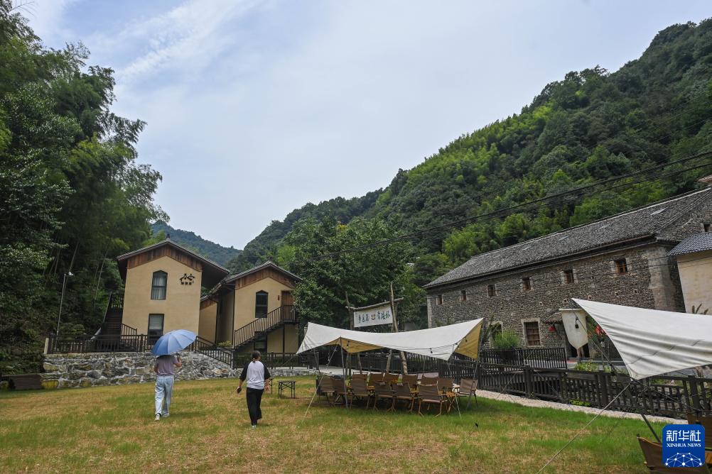7月13日拍攝的湍口鎮湍源里民宿集群。這個由閑置糧倉和村民舊居改造而成的民宿由當地新鄉賢出資打造并經營,為村集體增加租金收入300萬元,帶動100余人次就業。
