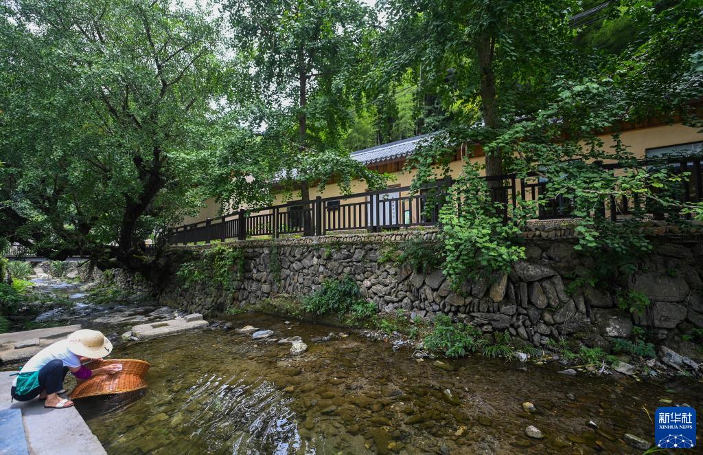 7月13日拍攝的湍口鎮湍源里民宿集群。這個由閑置糧倉和村民舊居改造而成的民宿由當地新鄉賢出資打造并經營,為村集體增加租金收入300萬元,帶動100余人次就業。