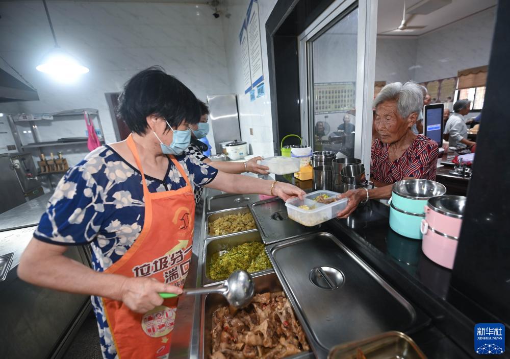 7月13日,老人們在湍口鎮迎豐村老年食堂打飯。該老年食堂的建設得益于新鄉賢們的捐贈相助。