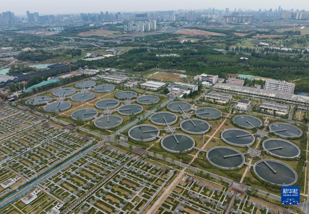 這是成都市第九再生水廠,位于錦江區大安橋村,總設計處理規模100萬噸/天(6月14日攝,無人機照片)。新華社記者 江宏景攝