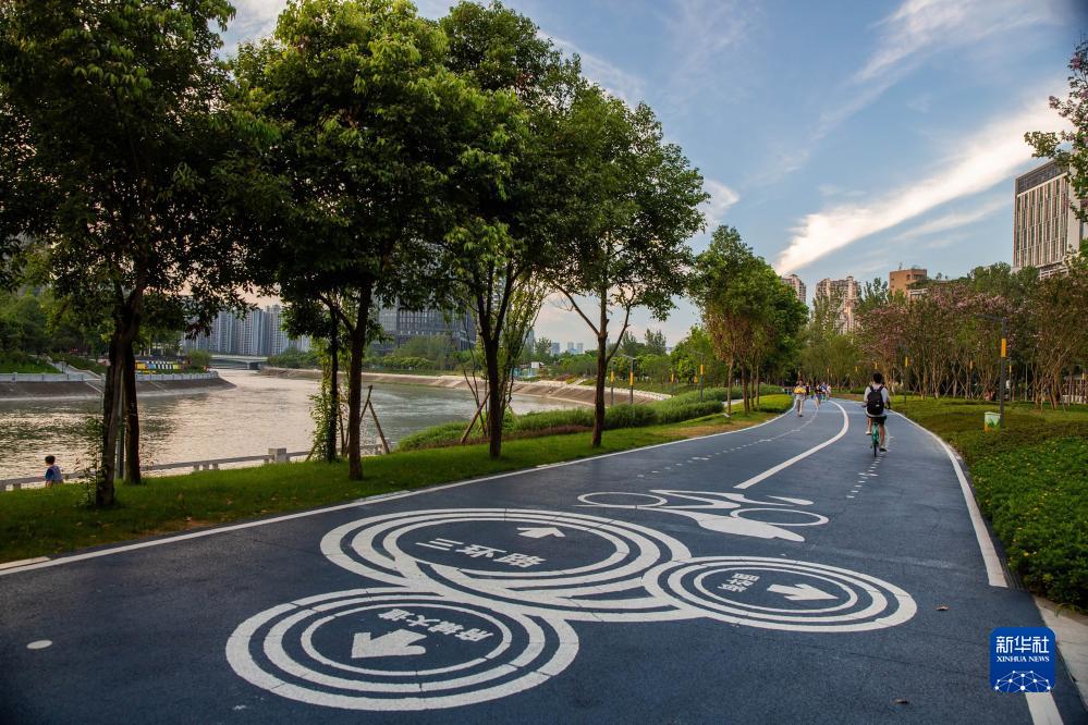這是錦江邊一段綠道(2022年8月20日攝)。都江堰至黃龍溪220公里錦江綠道串聯沿線23個公園和12處景區。新華社發