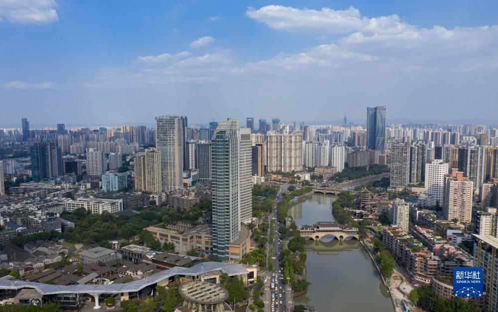 俯瞰流經成都市主城區的錦江一角(6月9日攝)。新華社記者 江宏景攝