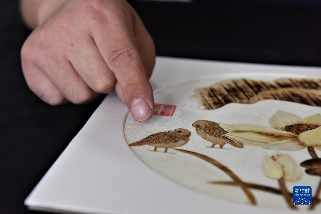 7月12日,吳永龍向大家展示新近完成的一幅畫作。新華社記者 黃曉勇 攝