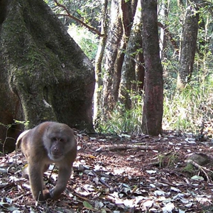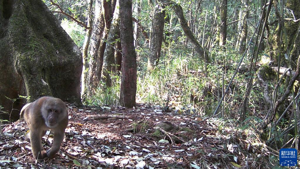 這是在高黎貢山國家級自然保護區用紅外相機拍攝到的熊猴(2022年3月21日攝)。