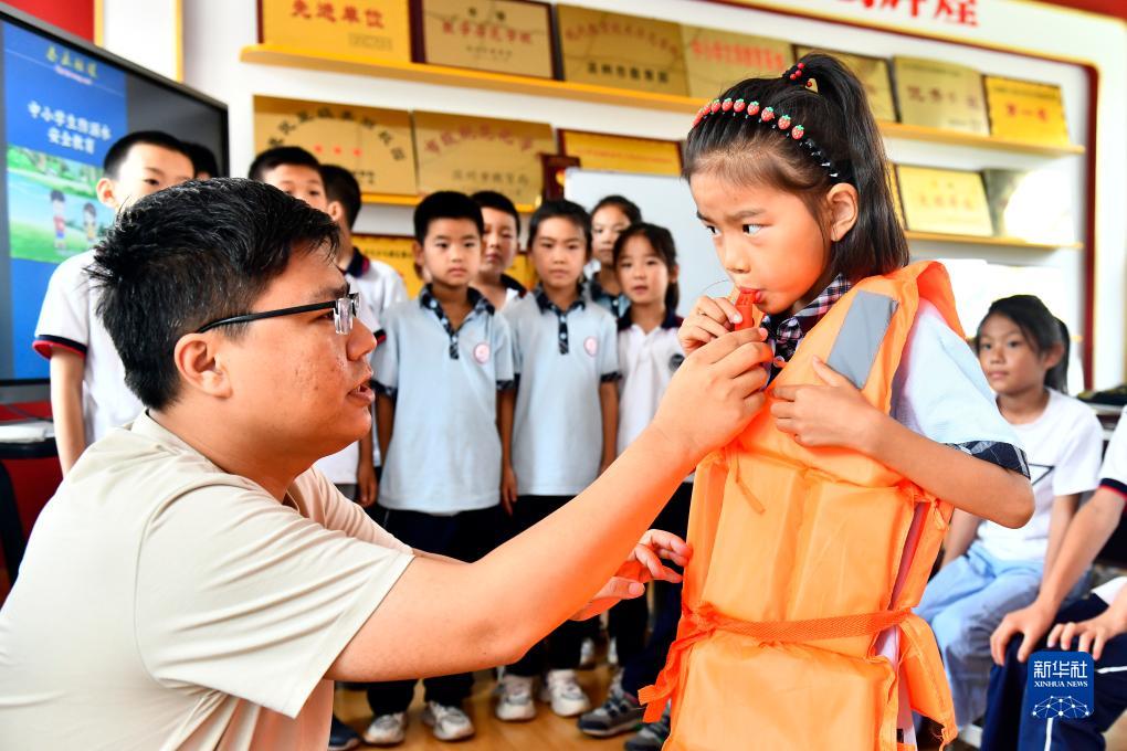 7月13日,在惠民縣石廟鎮一處“濱濱學堂”,一位公益講師教孩子們防溺水安全知識。