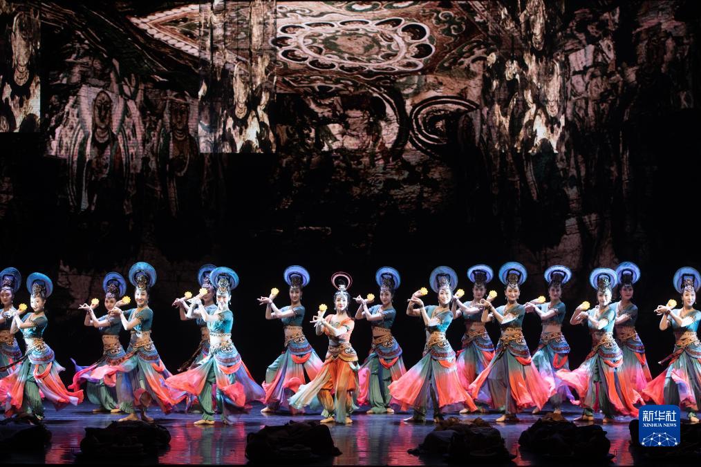 當日,舞劇《五星出東方》在武漢市湖北劇院上演。該劇的構想源于從我國新疆和田尼雅遺址出土的國家一級文物“五星出東方利中國”漢代織錦護臂。新華社發(杜子璇攝)