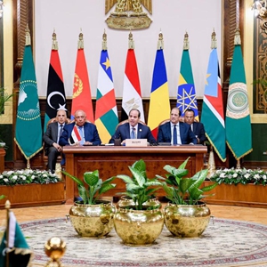 7月13日,埃及總統塞西(中)在埃及開羅舉行的蘇丹鄰國峰會上講話。