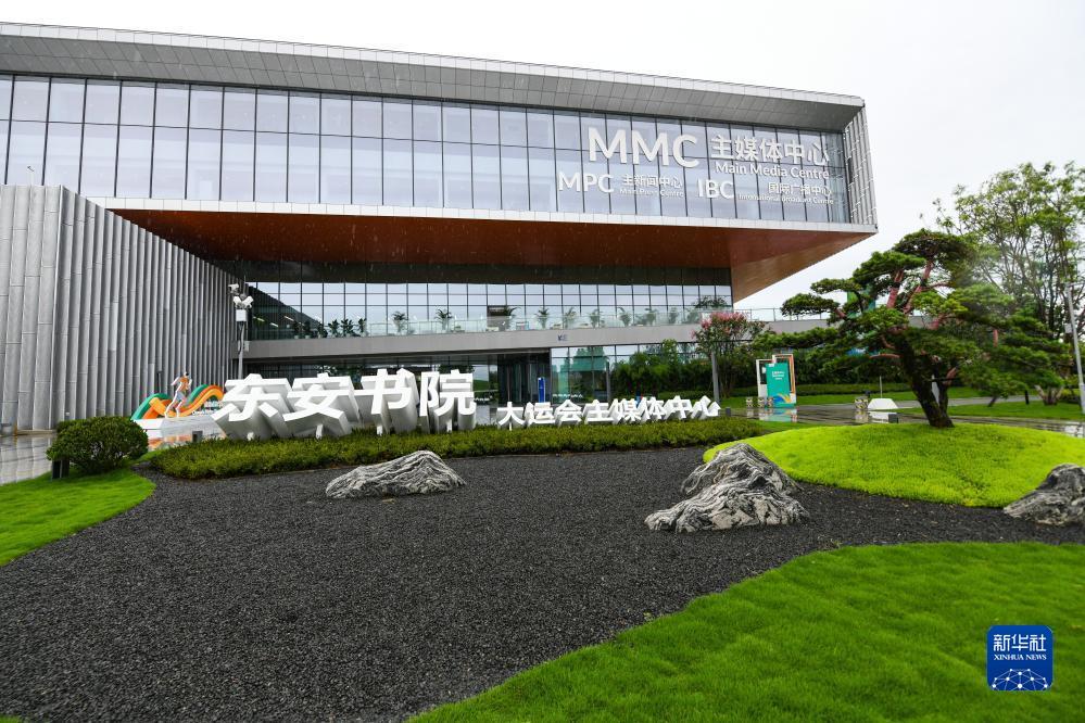 這是7月13日拍攝的成都大運會主媒體中心南側入口。