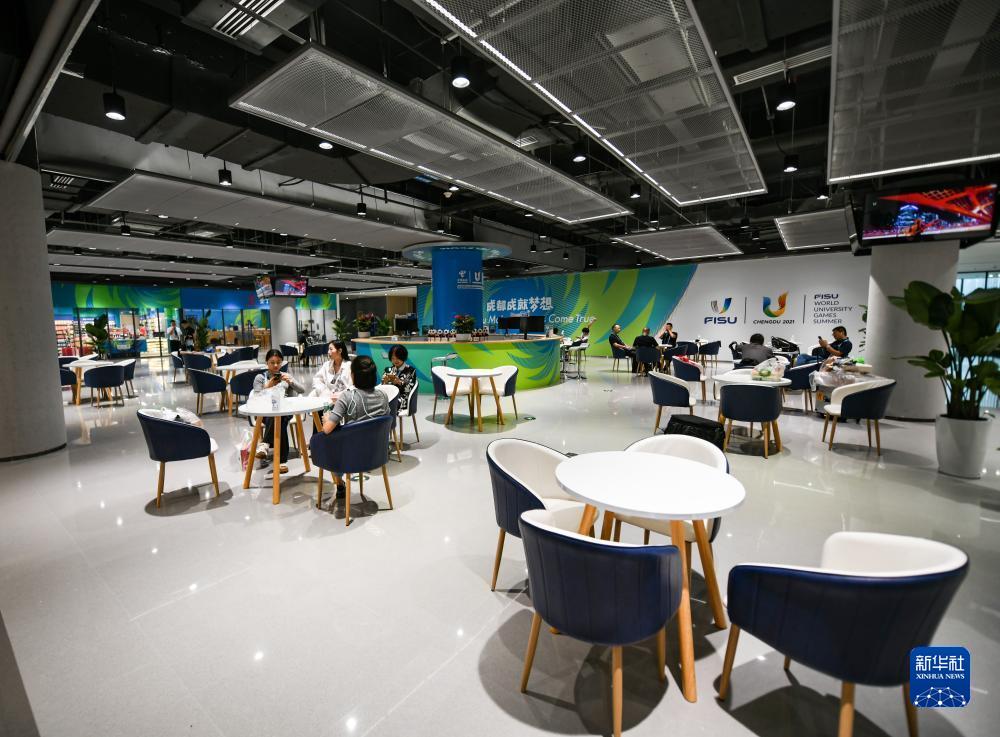 這是7月13日拍攝的成都大運會主媒體中心的會客廳。