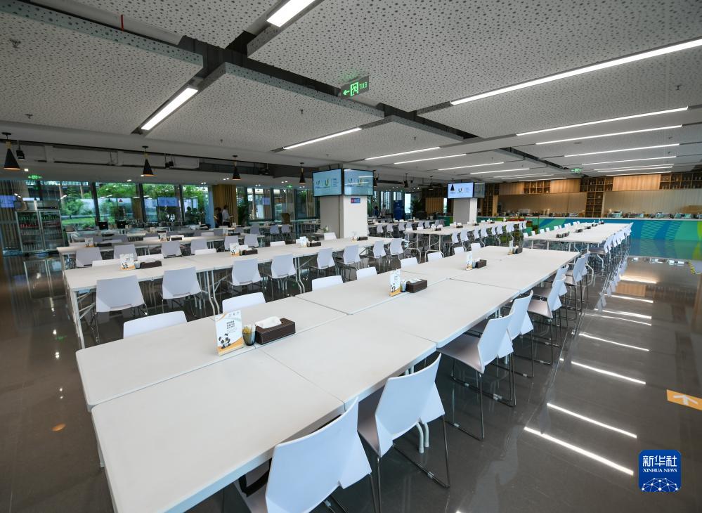 這是7月13日拍攝的成都大運會主媒體中心的媒體餐廳。