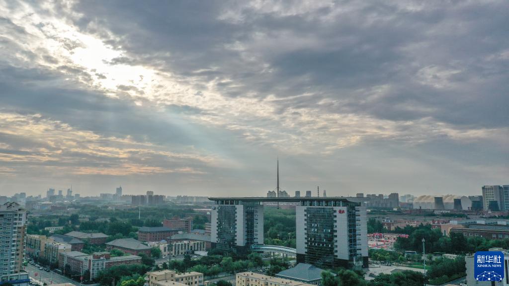 7月13日無人機拍攝的晨曦中的一汽解放總部大樓。