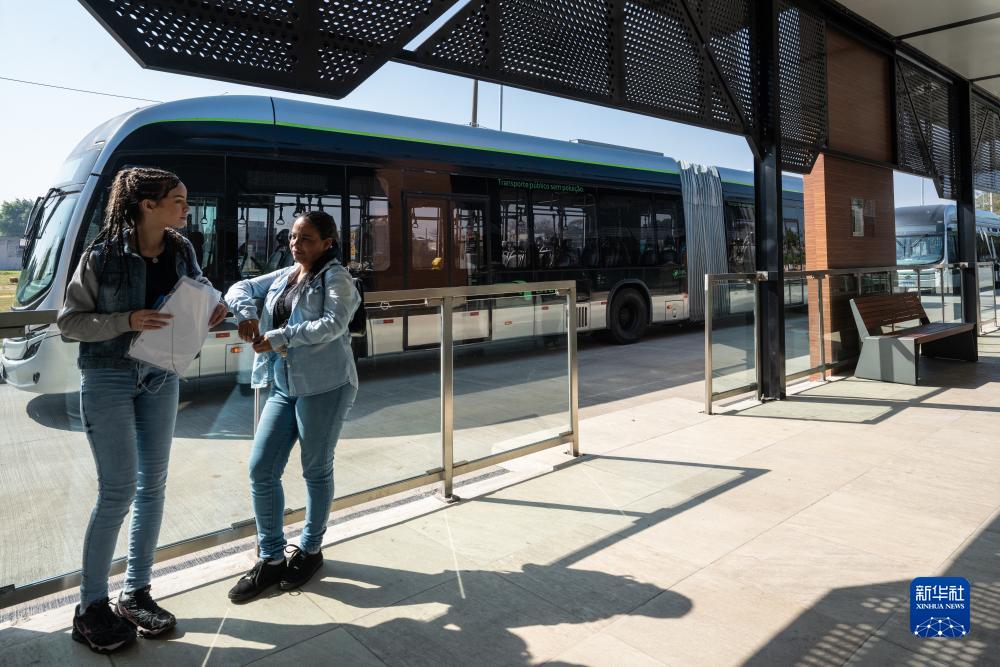 7月12日,在巴西圣保羅州圣若澤杜斯坎普斯,市民在快速公交系統“綠線”始發站等車。