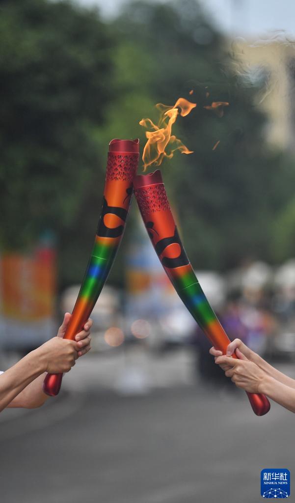 新華全媒+丨成都大運會火炬在西南財經大學(柳林校區)傳遞