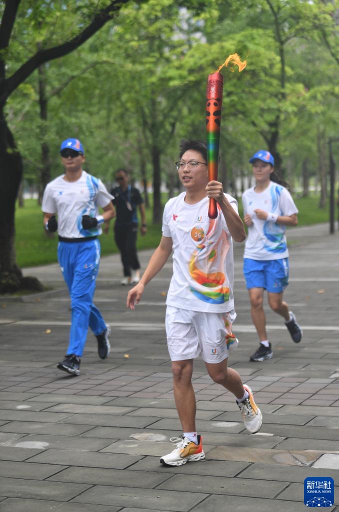 新華全媒+丨成都大運會火炬在西南財經大學(柳林校區)傳遞