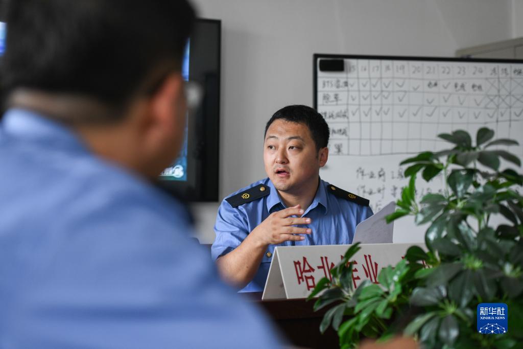 7月13日,在哈爾濱通信段哈北通信車間,魏巍在工隊班前布置會上進行職責分工。
