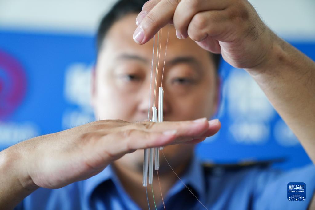 7月13日,在哈爾濱通信段哈北通信車間學習室,魏巍在進行通信光纜熔接訓練。