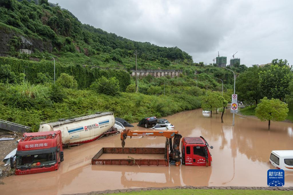 7月14日,在重慶市萬州區江南新區,??吭诼愤叺牟糠周囕v陷在洪水淤泥里。