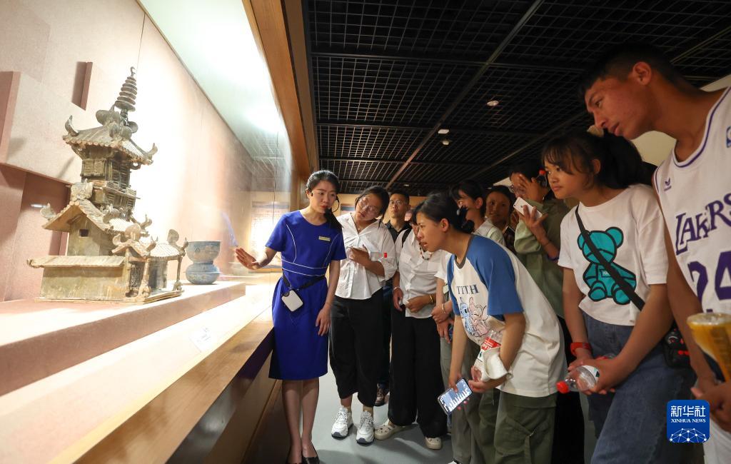 7月14日,在湖北省襄陽市博物館,來自西藏山南市瓊結縣的手拉手夏令營的學生們跟隨講解員參觀。