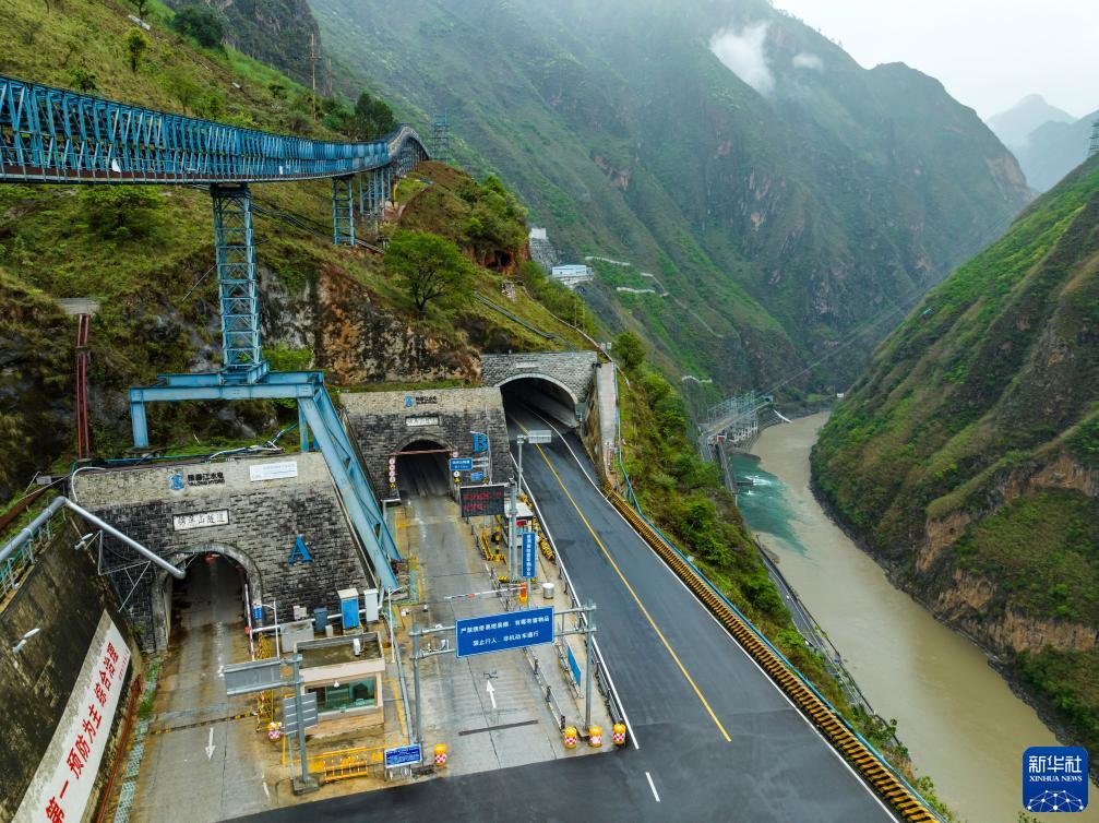 這是7月4日拍攝的中國錦屏地下實驗室所在的錦屏山隧道口以及旁邊的雅礱江(無人機照片)。新華社記者 沈伯韓 攝