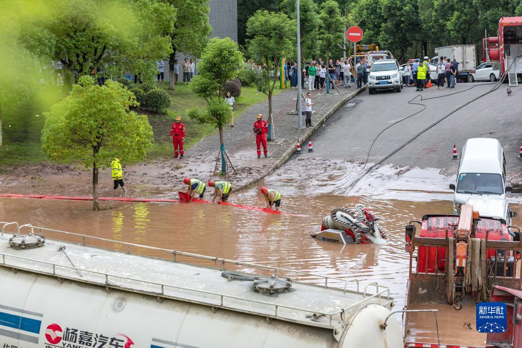 7月14日,在重慶市萬州區江南新區,排水機器人在進行排水搶險作業。