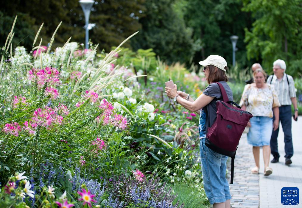 7月14日,游客在德國曼海姆的路易森公園參觀聯邦園藝展。