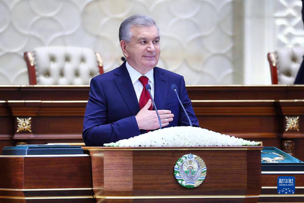 烏茲別克斯坦當選總統米爾濟約耶夫14日在烏最高會議(議會)宣誓就職。新華社發(烏茲別克斯坦外交部供圖)