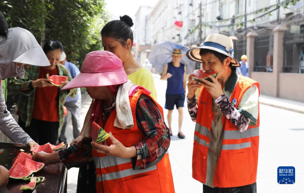 連日來,入伏后的江西南昌高溫炙烤,青山湖區站東街道新時代文明實踐所開展“致敬勞動者 香甜西瓜送清涼”活動,為轄區環衛工人發放綠豆和西瓜等防暑降溫物品,送上一份清涼與關懷。