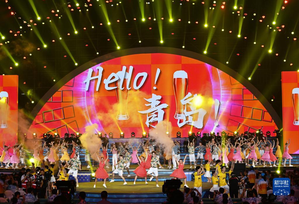 7月14日,演員在第33屆青島國際啤酒節開幕式上表演。